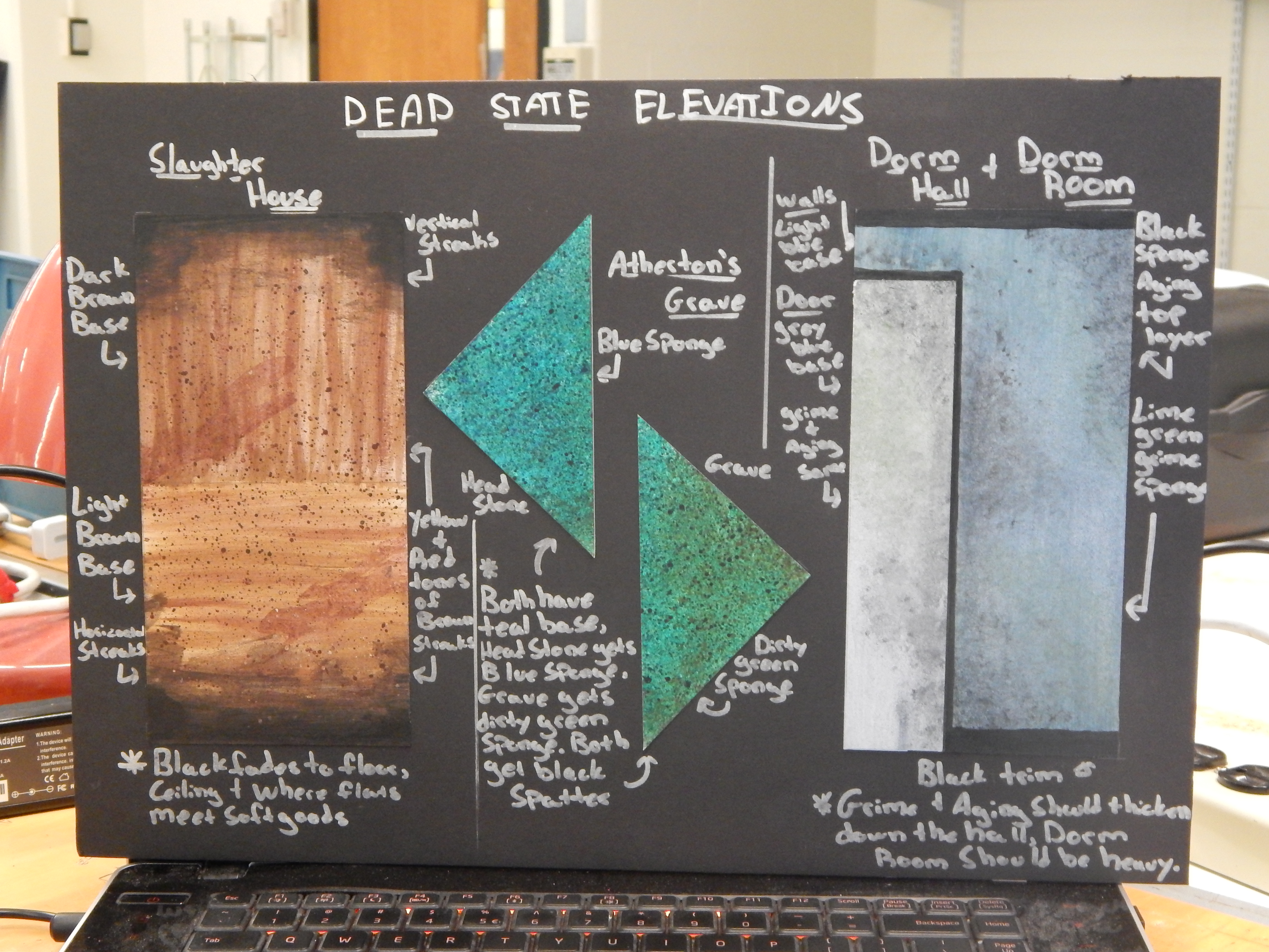 Sample Paint Elevations – This project was under an intense time and budget constraint. Since there would be dim lighting, we designed heavy on texture and light on detail.